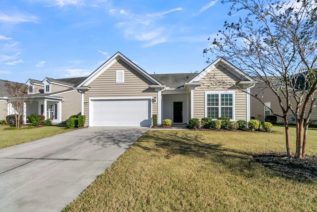 Stunning Abbeyville model in excellent condition located in Del Webb Cane Bay! Situated on a beautiful homesite with breathtaking lagoon views! This 2 bedroom, 2 bathroom home with office/den, and sunroom is truly move in ready! New 2025 HVAC! As you enter the home, you will notice a defined foyer with charming archway complete with hardwood flooring. Off the foyer, you will find the second bedroom and bath tucked away, offering your guests downstairs plenty of privacy. Also off the foyer, a den/office with glass French doors. Leaving the foyer, a very well planned open concept floor plan ideal for entertaining friends and family. The kitchen is complete with Maple cabinets, granite countertops, tile backsplash, under cabinet lighting, Stainless Steel appliances and center island with...pendant lights. The dining area could be dressed up or down, it works as a formal dining room or eat in kitchen depending on your preference. From there, a sunroom leads you onto an exterior patio surrounded by a tranquil setting. Back inside, hardwood flooring continues throughout the main living areas of the home, including the office/den and sunroom. Tile flooring in the bathrooms and laundry room. A laundry room with additional storage opportunities is conveniently located next to the primary bedroom. The primary bedroom suite with tray ceiling and lagoon views is tucked in the back corner of the home and features dual sink vanity, granite countertops, walk-in tile shower and an oversized walk-in closet. A built-in drop zone and additional storage closet takes you to the two car garage. Low maintenance living in Charleston's premier lifestyle/active adult community, please book your showing!
