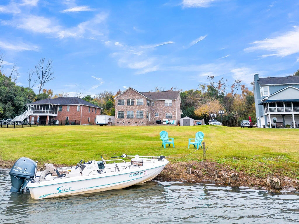 Outside as the tide rises you can simply pull your boat up to the bank of the yard and tie it off to the post almost like you are tying off a horse in a classic western movie. Current owners can simply step from the grassy bank directly into their boat and head out towards the Cooper River from there. One of the unique features of this home is that it is set back from the Cooper River, allowing you to have a protected area for your boat to sit without the concern of changing currents. You can safely and easily paddle a kayak or a canoe in the protected rice paddy water field.