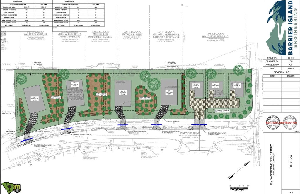 BUILDERS! This an opportunity to build 4 new single family houses spanning 1 acre. All 4 lots will be served by NCDS and CWS. Property has already gone through Charleston County Major Subdivision permitting, and received all approvals and permits such as CZC, MS4, driveway permits, npdes, etc. The site is ready for the site work and vertical construction! Ladson is booming with new industries, and these would make excellent spec homes or hold them as rentals. Pad sizes on the 4 lots are 38'x60' each.
