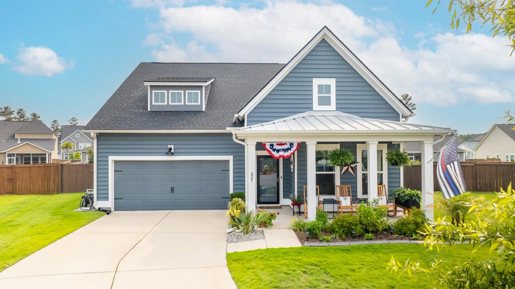 Welcome to 627 Macintyre Circle, a beautifully upgraded and meticulously maintained home located on a highly desirable cul-de-sac in the sought-after Waterside neighborhood of Cane Bay Plantation. With stunning curb appeal, lush landscaping featuring zoysia grass, an irrigation system, palm trees, river rock, and a welcoming front exterior, this home immediately stands out. Inside, you'll find a thoughtful and stylish design throughout. Just off the entryway is a formal dining room that flows into the open-concept kitchen, eat in area, and great room creating an ideal space for everyday living and entertaining. Off the main living space enjoy a screened in and extended patio overlooking a fully fenced back yard oasis.The main-level owner's suite offers a private retreat complete with a beautifully updated en-suite bath and a custom closet system. Upstairs, a spacious loft is surrounded by three additional bedrooms, providing flexible living options for family, guests, or a home office. This home is loaded with high-end upgrades, including finished garage floors, designer trim and wainscoting throughout the main level, upgraded window casings, custom blinds, black door hardware, and fresh interior paint. The kitchen island features eye-catching shiplap, and the powder room has been tastefully remodeled with a new vanity and matching shiplap accent wall. The builder-grade stove and dishwasher have also been replaced with upgraded appliances.