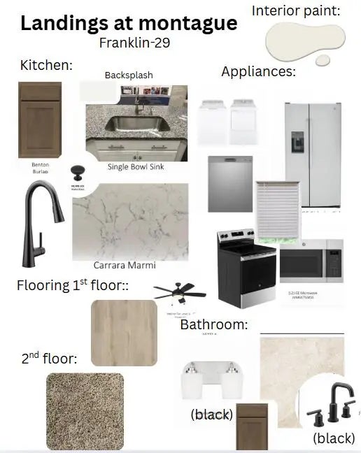 Frankling plan! 1st floor: Features a 1-car garage and a front covered porch entry. Inside, there's a powder room, and a coat closet near the foyer. The kitchen sits across from the pantry and stairs, with an island that includes a sink alongside the cabinetry. A spacious great room completes the open layout 2nd floor: two guest bedrooms and shared bath with a tub at the end of the unit. A laundry closet and linen closet sit along the stair rail, leading to the primary bedroom, which features two closets and a private bath with a stand-up shower and water closet and double sink vanity