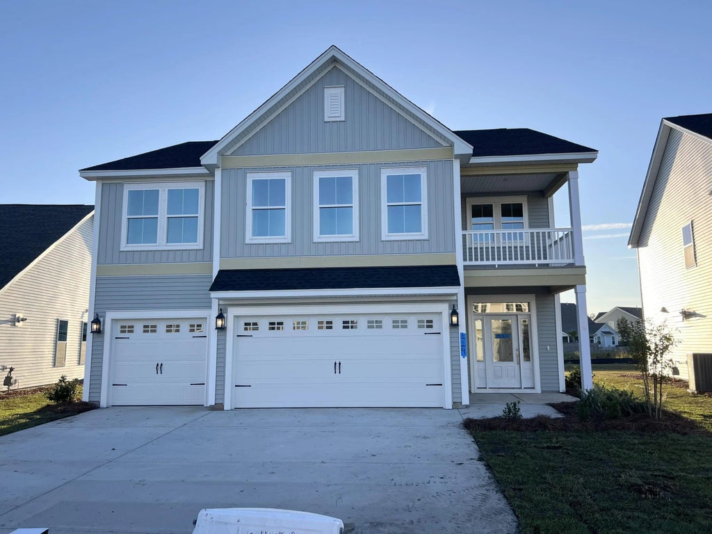 Don't miss one of the final opportunities to own this beautifully upgraded Saluda, offering a 3-car garage and iconic Charleston-style curb appeal. Step into a bright and inviting 2-story foyer that flows into a spacious open-concept layout perfect for both everyday living and entertaining. The gourmet kitchen features a large center island and opens to a sunroom and covered porch for year-round enjoyment. A private guest suite is located on the main level. Upstairs includes a flexible loft, two generously sized bedrooms, and a luxurious primary suite with sitting area, oversized walk-in closet, and spa-like bath with a tiled walk-in shower. The laundry room offers ample counter space and storage. Packed with upgrades, this home is the perfect blend of charm, comfort, and functionality!