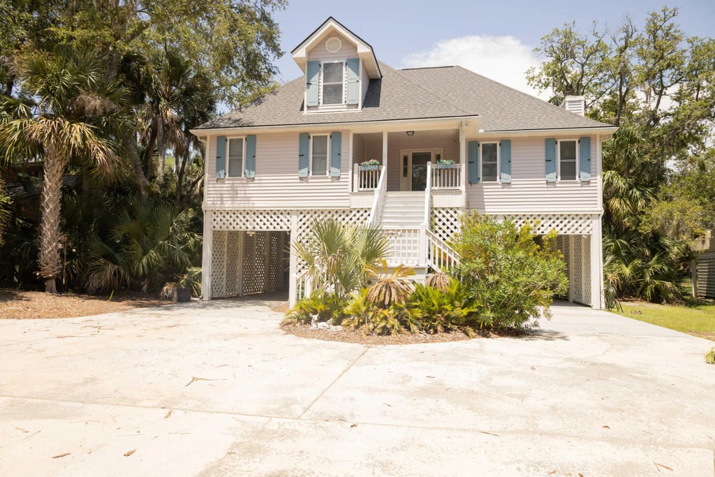 Beautiful home located on the 13th tee of the Plantation Course. Master suite with huge walk-in closet located on the main floor with 2 bedrooms, one bath and an office located on the second floor. Home is offered partially furnished. Enjoy the view and the breeze from the large screened porch on the rear of the house. The rear deck features a grill with connection to a 120 gal LP tank which also serves the fireplace in the great room. Large storage/workshop underneath. A new two-stop elevator has been installed. Removable hurricane shutters are included.The house is being sold partially furnished - all the remaining furniture, pictures, etc are included.The golf cart is available for sale.