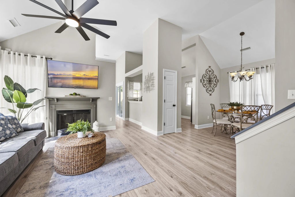 Move in ready, on a corner lot in one of the hottest up and coming areas in all of Charleston. Step inside a bright and airy living room with soaring ceilings, and oversized windows that fills the space with natural light. The updated kitchen features modern finishes and a cozy dining nook perfect for enjoying family dinners. Working from home is easy with the dedicated office that overlooks the backyard patio. The huge downstairs primary suite offers dual closets and a versatile flex space that could be a nursery, sitting room, or even a 4th bedroom. Upstairs, you'll find two additional bedrooms and a full bathroom.Enjoy an active neighborhood with parks, trails, basketball courts plus conveniently located to shops and restaurants.