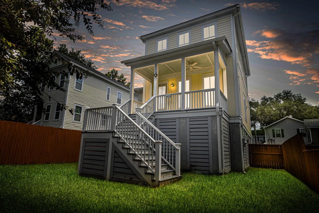 A 3 bedroom, 2 & 1/2 bath elevated Charleston style home with all the upgrades. This open floor plan home has SO MUCH to offer including spacious front AND back porches, 10' ceilings, all hard flooring on the main level, tankless hot water heater, fully fenced in yard & a huge 2 car garage with tons more room for storage!! Attention to design & detail is evident throughout. The kitchen is complemented with all stainless appliances, fridge that conveys, granite countertops & plenty of beautiful wood cabinets, The spacious master suite is complete with crown molding, dual granite vanities & a walk in custom tile shower. Even the 2nd full bath has a walk in subway tile shower! You'll love the separate laundry room with shelving, wooden steps and finished powder room. Come see it today!!The entire house is bathed in natural light from the large windows. Entertaining home w/ indoor/outdoor lifestyle. Located only minutes away, or a short bike ride, to all the wonderful Park Circle has to offer including parks, playgrounds, amenities, shopping, highly acclaimed restaurants, parks, and more! Book your showing now because it won't last long!!