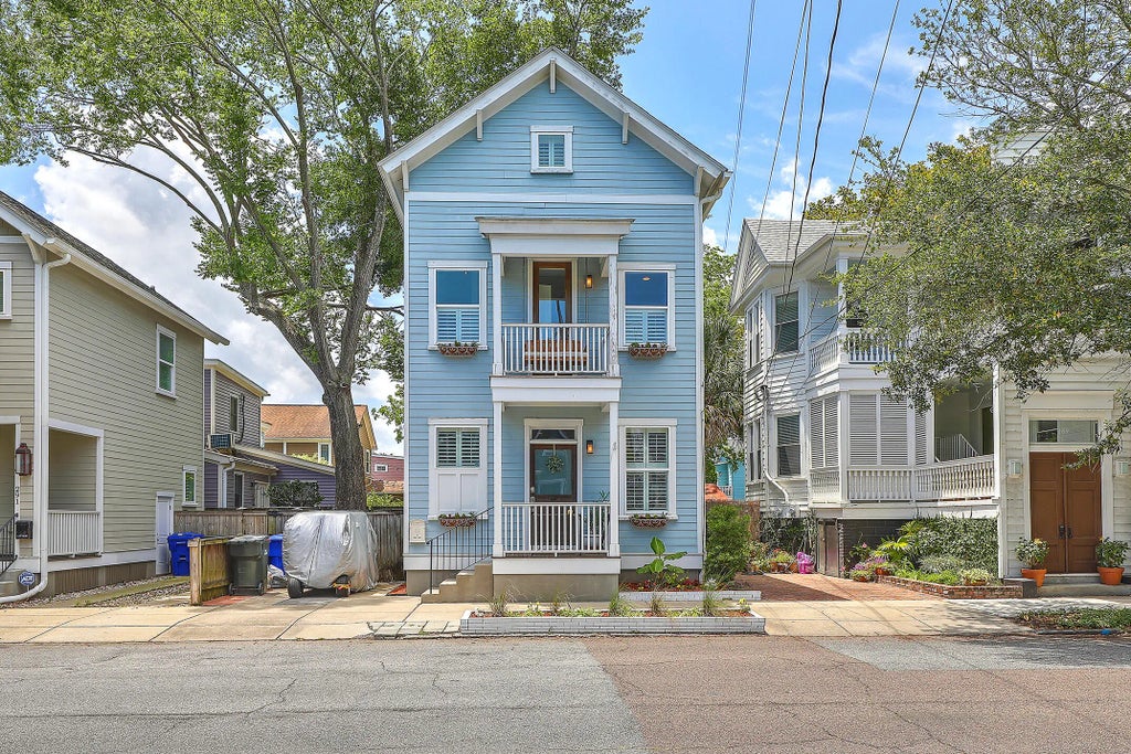 Must-See downtown gem that beautifully blends Charleston's historic single house -style architecture with modern design and conveniences. Conveniently located just a block from King Street and walkable to nearby restaurants, coffee shops, and boutiques.Designed by architect Julia Martin and built in 2010, the home's light-filled interiors feature tall ceilings, hardwood floors, detailed trim, and recessed lighting throughout. The fully renovated kitchen has quartz countertops, a waterfall-edge island, subway-tile backsplash, custom cabinetry, and stainless LG appliances. The kitchen flows seamlessly into the living and dining spaces, and the back door opens to the private blue-stone courtyard with grill, storage, and seating--perfect for entertaining.Upstairs, the second floor