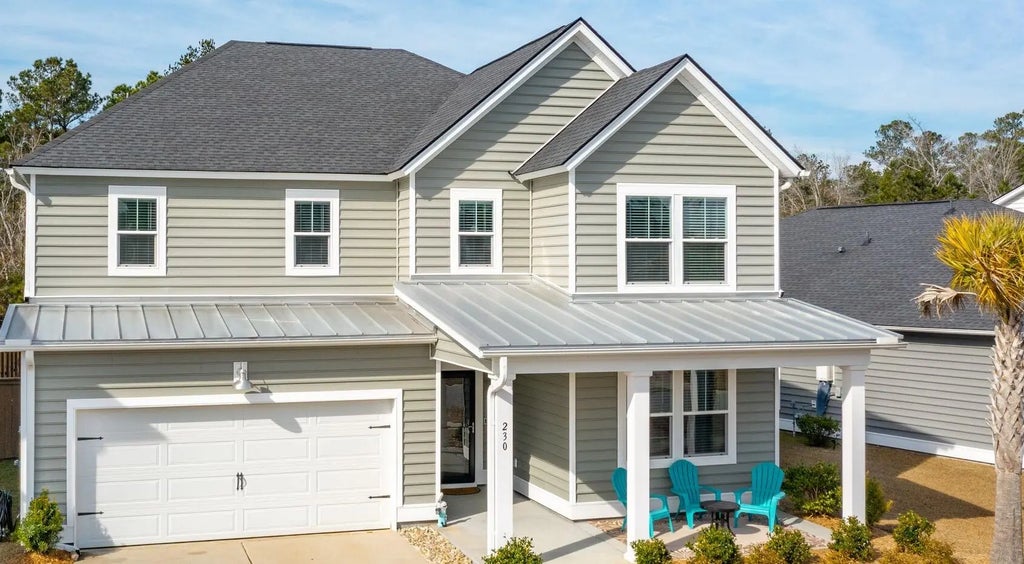 Welcome to Waterside in the Lakes of Cane Bay, where comfort and style meet in this beautifully designed two-story home. From the inviting foyer, you'll be welcomed into a spacious entry where you immediately see the beautiful formal dining room--perfect for entertaining family and friends. The open living room is the heart of the home, boasting soaring two-story ceilings and abundant natural light, making it a perfect space to gather or relax. The main floor also offers a guest bedroom with full bath, a cozy family room, and a well-appointed kitchen complete with a large island, casual dining area, butler's pantry, and a convenient owner's entry.Upstairs, the expansive primary suite creates a private retreat with a large bathroom featuring a beautifully-tiled shower, soaking tub, and dual vanities. Two additional bedrooms share a full bath, and a spacious bonus room with a built-in office nook offers flexibility for work, play, or hosting guests.