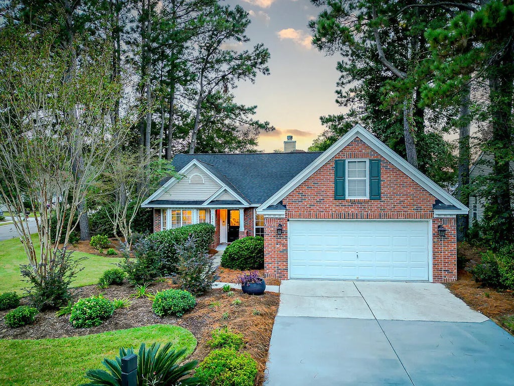 Nestled in a prime location, this meticulously maintained ranch-style house is a perfect blend of comfort and elegance. With its enchanting views of a serene pond and a beautifully landscaped lot, this property offers a peaceful escape while still being conveniently close to local amenities. Natural light flows throughout the open floor plan with 5'' plank floors, tile and high ceilings throughout. Neutral granite counters and stainless steel appliances make up the kichen, open to the living space with a cozy, woodburning fireplace. The private sunroom overlooks the pond, making it the perfect spot to relax and watch wildlife. The primary suite is found in the back of the house, separate from the other bedrooms with a walk-in closet, updated master bath featuring dual vanities, oversizedshower and two linen closets. The two additional bedrooms, also with 5" plank floors, share a bathroom with 2 more hallway closets. Additionally, the oversized, epoxyed floor garage offers plenty of space for vehicles and storage, catering to both convenience and practicality. Whether you prefer to relax by the pond, enjoy gardening, or host outdoor gatherings, this outdoor space and open floorplan are designed for living your best life. The three zone irrigation system makes lawn care a breeze. Belle Hall amenities, shopping and schools are just minutes away! Bike, walk or golf cart to near by restaurants, gyms, grocery store and schools. Don't miss this opportunity to own a piece of tranquility in a sought-after location. This ranch home perfectly combines charm, functionality, and outdoor beauty, making it the ideal choice for anyone looking to create lasting memories. Schedule a viewing today and experience firsthand the lifestyle this home has to offer!