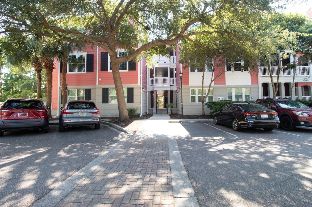 One of James Island's Best! 2012 Telfair Way is a centrally located long term rental. This unfurnished 2-bedroom 2-bathroom condo is a yearly rental for 4 guests. Located near the James Island Connector, this condo has easy access to the greater Charleston area. The coastal town of James Island also has a short 20 minute drive to access Folly Beach. The gated community provides access to a large pool and fitness center. The pool area has plenty of lounge spaces and multiple grills for guest use. The complex is rich with foliage and sidewalks with plenty of spots for your pups to explore on a walk.This condo is filled with natural light throughout. The open layout has spaces for living room with shelving and TV hook up.There is a designated space for a 4 person dining table or a desk space. The living room connects to a screened in porch. There is room to put a few chairs and table to create the perfect spot for morning coffee. The kitchen has ample cabinet space, an electric range, a microwave, and a dishwasher. Both bedrooms have walk-in closets and fans for maximum comfort in the summer months. One bedroom has an ensuite private bathroom with shower/tub combo. The second bathroom also features a shower/tub combo. There is an in-unit washer/dryer as well. Please note that this is a first floor unit but there are 4 steps that must be used to access the unit.