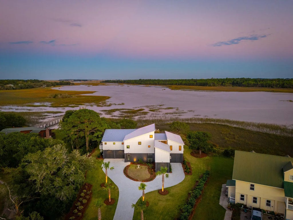 Welcome to Villa Serena, a modern, one-of-a-kind, gated waterfront sanctuary seconds to the Sol Legare boat landing, less than 10 minutes to Folly Beach and 20 minutes to historic Downtown Charleston. Villa Serena is unlike anything in the surrounding area and designed with a level of thought, craftsmanship, and indoor-outdoor connectivity that simply isn't being replicated. Resting on close to an acre of high, elevated coastal land -- so elevated that during the most recent king tides that flooded most of Charleston and the Beaches, the water never even reached the grass -- this private estate offers unobstructed long-range water views from almost every window in a setting of quiet, natural serenity.The property features an automatic custom-made cedar gate, six-figure landscaping package with extensive plants, zoysia grass with irrigation, fountain, and lighting, IPE decking, impact windows, spray foam insulation, hardi plank siding, metal roofing, hot tub & EV charging pre-wire, an outdoor shower, and expansive secured covered storage beneath the home for all your toys.